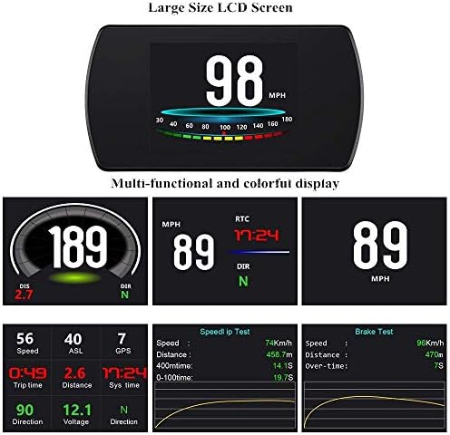 🚙【RICH CONTENTS 】Compass,Driving latitude and longitude, Vehicle speed, driving direction, voltage, driving distance measurement, driving time, low voltage alarm, over speed alarm, satellite time and number, altitude, freely switch between kilometers and miles,speed up test, brake performance test. Multi function display or simple function display can be switched freely.