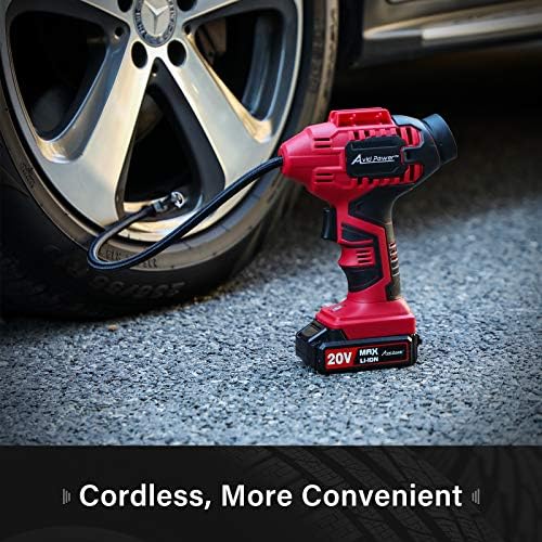 AVID POWER Cordless Tire Inflator with 20V Lithium Battery and 12V Car Power Adapter