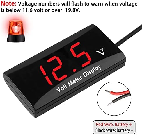 Car Digital Voltmeter Gauge DC 12V, Waterproof LED Digital Display Voltmeter for Car Motorcycle, Power Energy LED Volt Meter for Car Battery Voltage Monitor (Red)