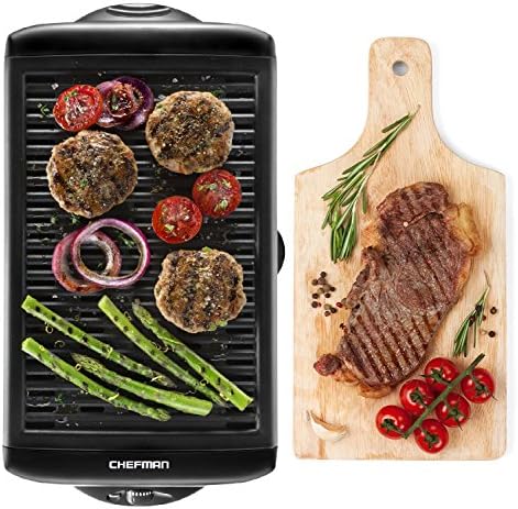Chefman Electric Smokeless Indoor Grill w/ Non-Stick Cooking Surface & Adjustable Temperature Knob from Warm to Sear for Customized BBQ Grilling, Dishwasher Safe Removable Water Tray, Black