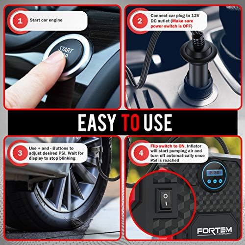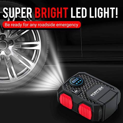 FORTEM Digital Tire Inflator for Car w/Auto Pump/Shut Off Feature, Portable Air Compressor, Carrying Case (Red)