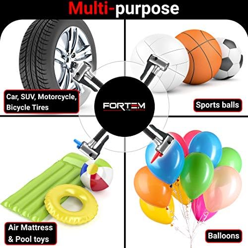 Compatible with all vehicles with a DC-12V power output Set Includes – 1 FORTEM Air Compressor – 3 Nozzle Attachments – 1 Extra Fuse – 1 Carrying Case