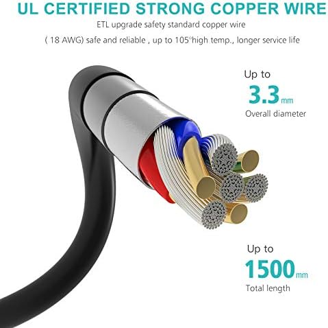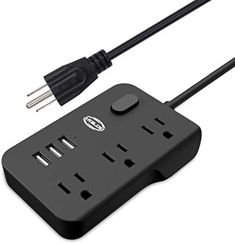POWER STRIP, Your Desktop Power Station – The power strip with 3 outlet & 3 USB ports (each up to 2.4A, 3A/15W in total) help to provide the daily need for multiple chargers, and can intelligently charge your devices, such as phones, iPad, tablet, kindle, etc. About 5 ft long extensive cord will meet your normal need.